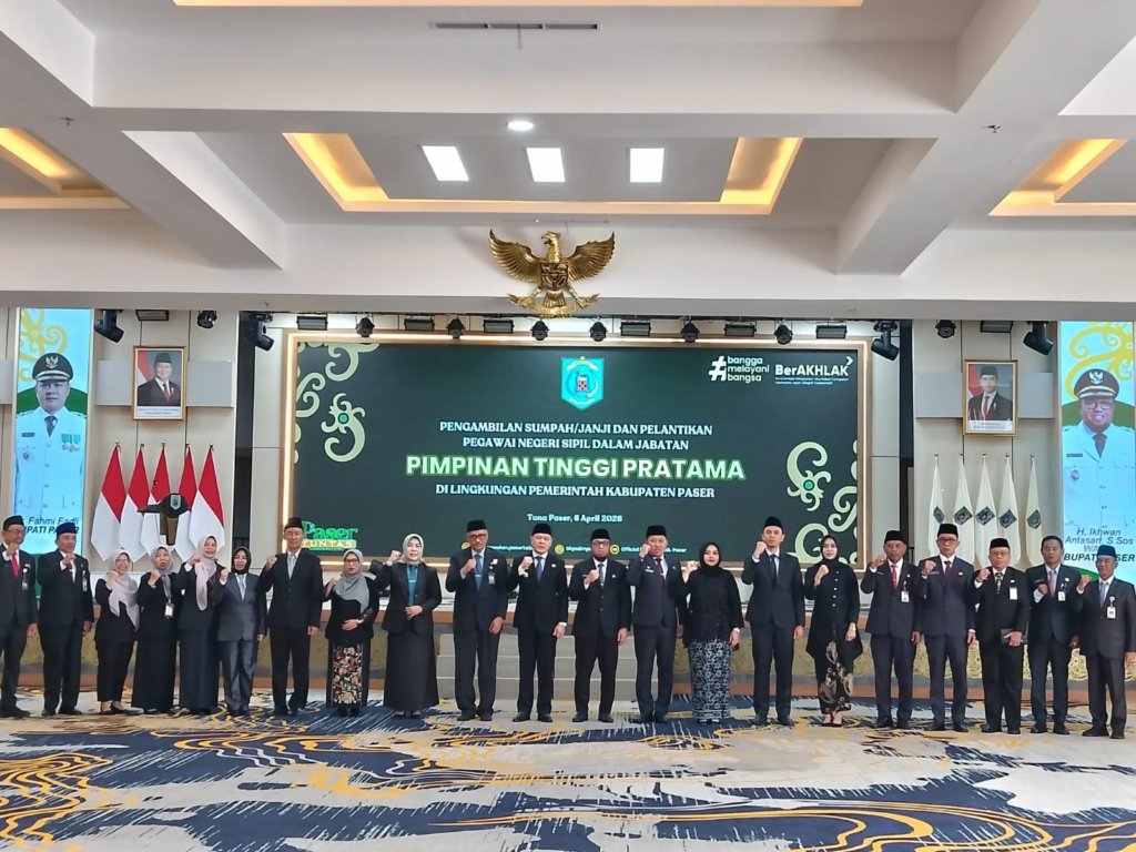 TANA PASER, kaltimupdatenews.com- Penguatan kinerja birokrasi kembali ditegaskan dalam langkah penyegaran organisasi di lingkungan Pemerintah Kabupaten Paser. Bupati Paser, Fahmi Fadli, secara resmi melantik sejumlah pejabat Jabatan Tinggi Pratama (JTP), Senin (6/4/2026), di Pendopo Lou Bapekat.
