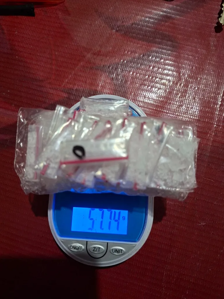 Dari hasil penggeledahan di dalam rumah dan kendaraan milik tersangka, polisi menemukan 21 paket plastik klip berisi serbuk kristal putih bening yang diduga narkotika jenis sabu siap edar. Total berat bruto barang bukti tersebut mencapai 57,74 gram.
